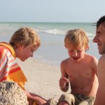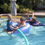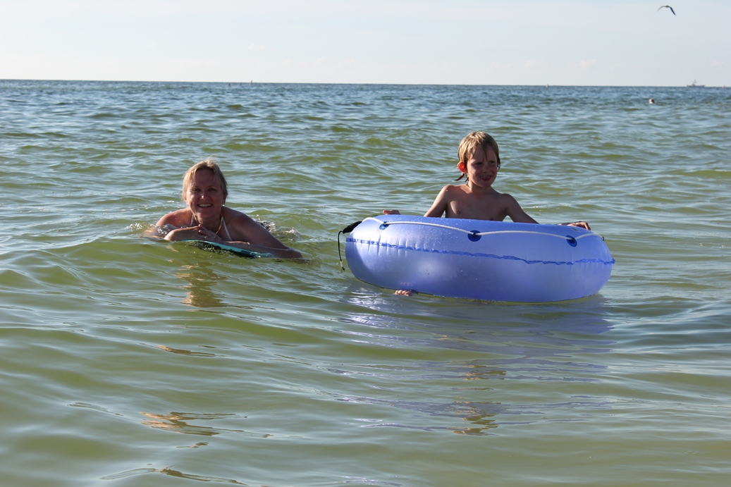 Die Kinder genießen es sehr, zum ersten Mal in einem warmen Gewässer in der freien Natur zu baden. Endlich haben sich die auf Sylt gekauften und dort nie benutzen Schwimmbretter bewährt….