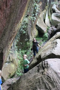Doch der Weg hat sich gelohnt. Dort gibt es einen kleinen, sehr bewachsenen und für die Kinder höchst spannenden Canyon. Es gibt sehr dünnen Felsspalten mit dem Namen „Fat Mans Misery“, durch die man sich hindurchzwängen muss.