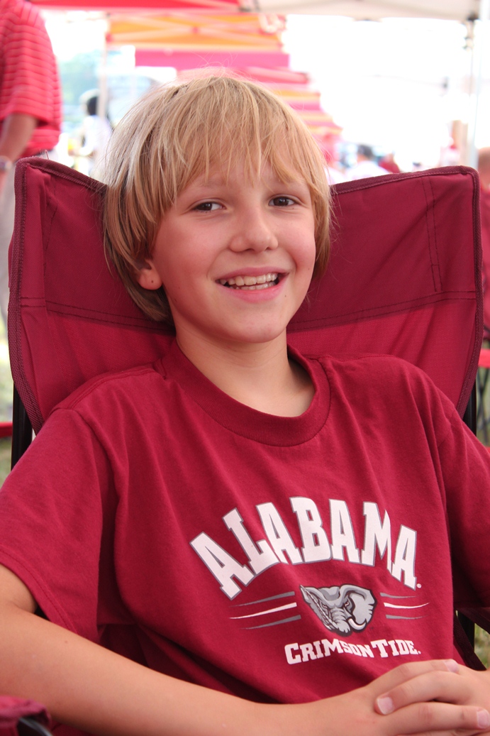 Ein erfreulicheres Erlebnis war die Teilnahme am Tailgating (Tailate = Kofferraum). Es handelt sich hierbei um eine Art Fest, die vor, während und nach dem Footballgame stattfindet. Auch wer sich nicht zu den Footballfans zählt, muss Tailgating mal erlebt haben. Die ganze Innenstadt von Tuscaloosa ist voll mit Zelten, Wohnmobilen und Menschen – alle in weiß / rot, den Farben des Footballteams von Alabama (nur Leander und ich nicht, da wir uns nicht zu den Fans zählen). Beim Talegating sitzt man auf Campingstühlen, ißt und trinkt und feiert.